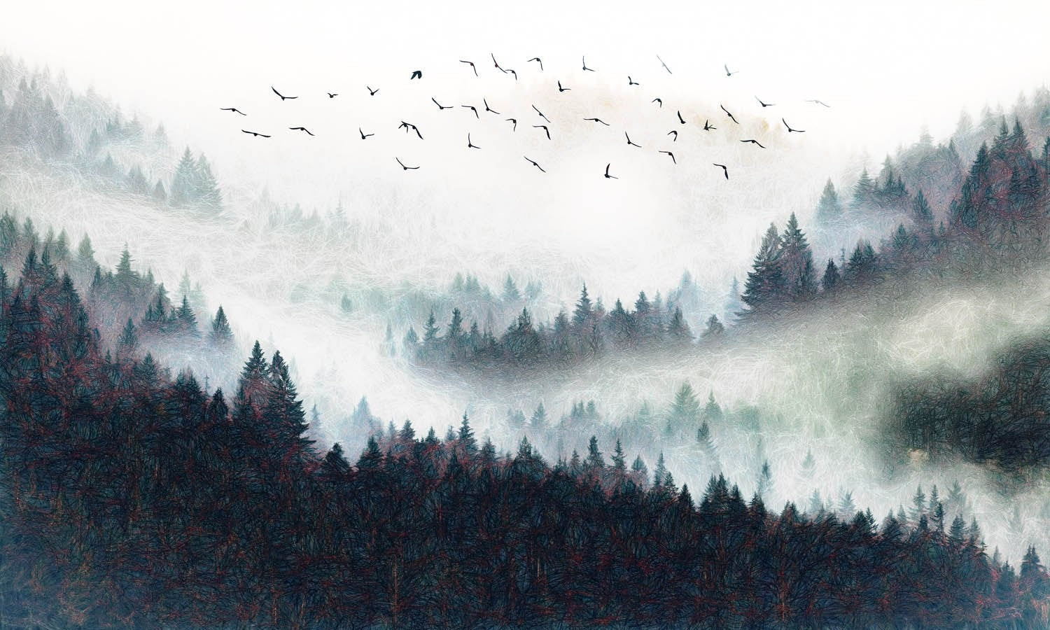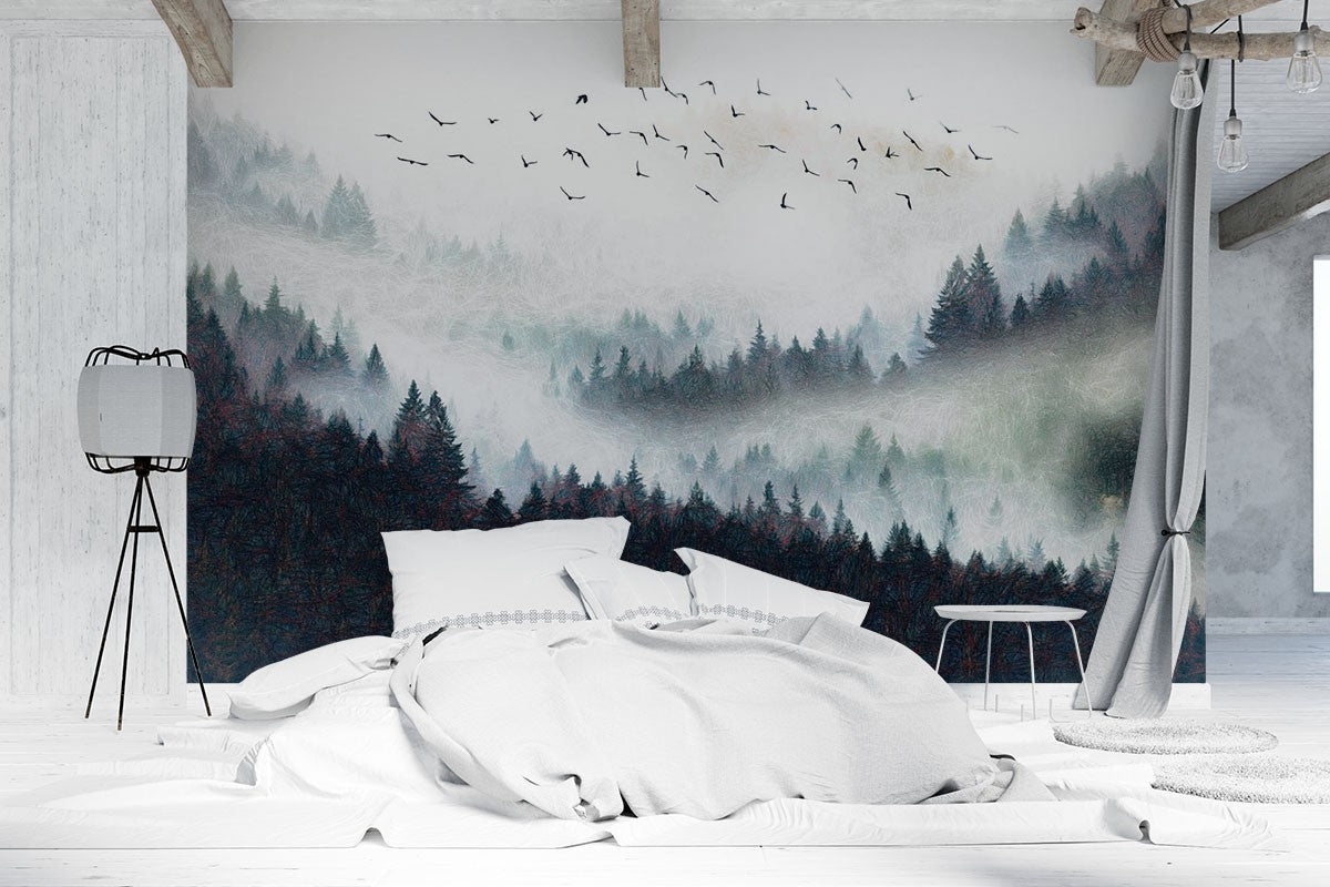 Wild Goose Nature Mountain Black And White Wallpaper Mural