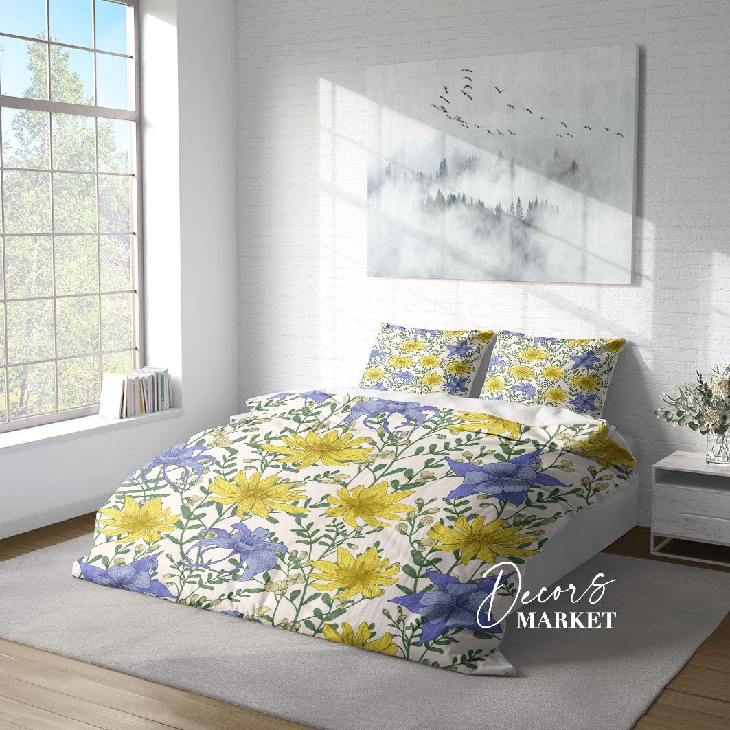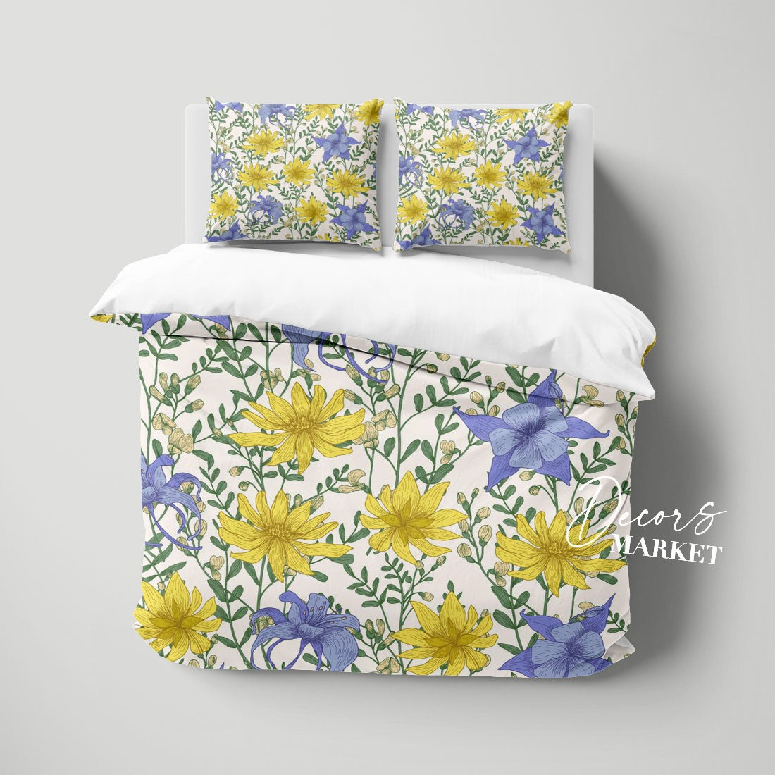 Wildflowers Chamomile Duvet Cover Set w Pillowcases, Yellow Floral Patterns 3D Quilt Cover, 3pc Single Double Queen King Size Doona Cover