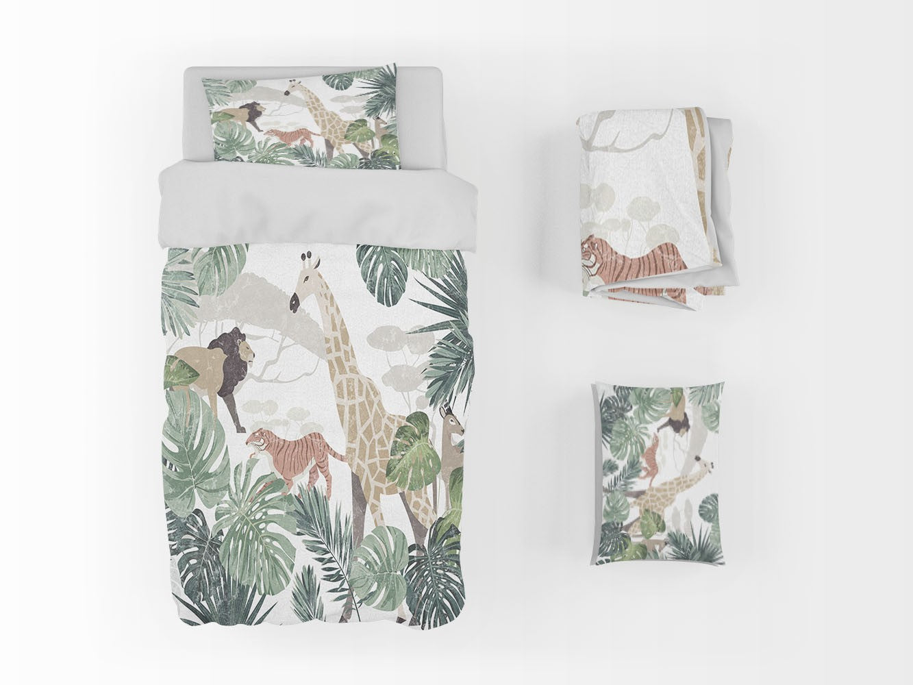 Wildlife Forest Kids Animal Green 3D Duvet Cover Set W Pillow Cover, Single Double Queen King Size, Printed Cotton Quilt Doona Cover 3 Pcs