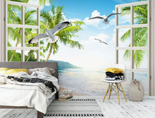 Windows Beach Palm Tree Blue Wallpaper Mural,Self-Adhesive Peel And Stick 3D Wall Decor,Removable Australian Company Wall Decor