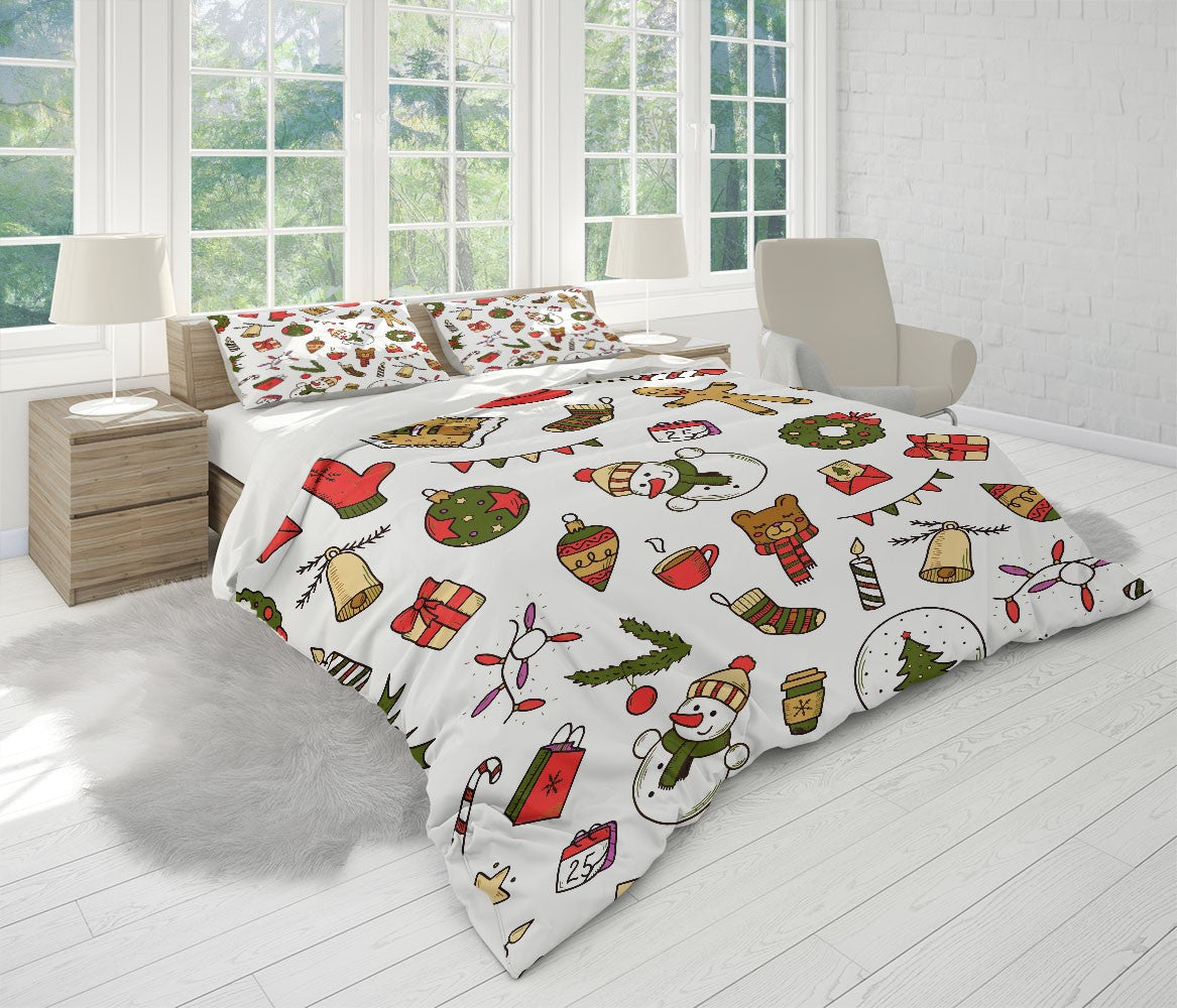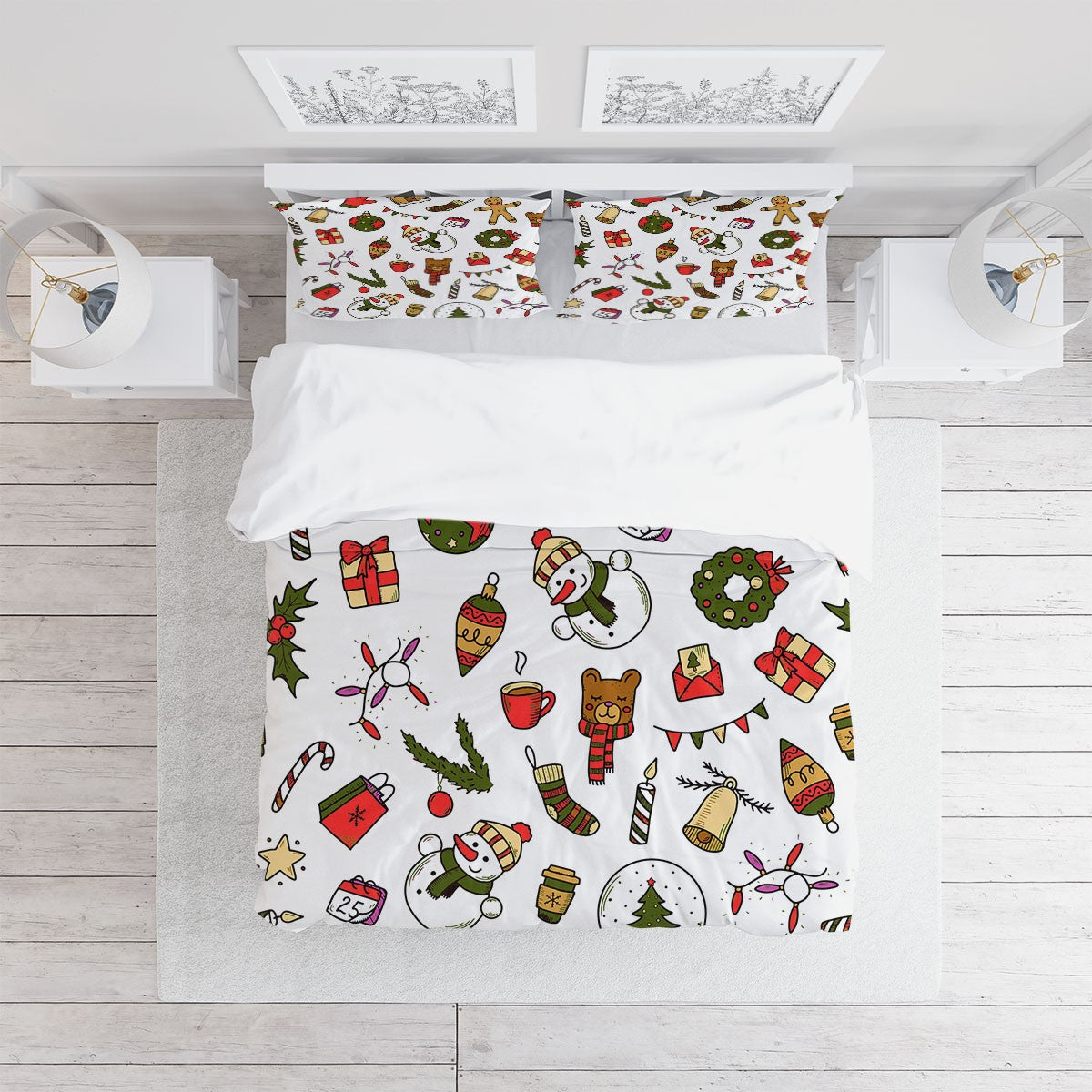 Winter Holiday Icons Duvet Cover Set W Pillowcases, Green Texture Patterns 3D Quilt Cover, 3Pc Single Double Queen King Size Doona Cover