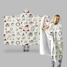 Winter Holiday Icons Texture Patterns White Personalized Hooded Throw Blanket Fleece Hoodie Cape