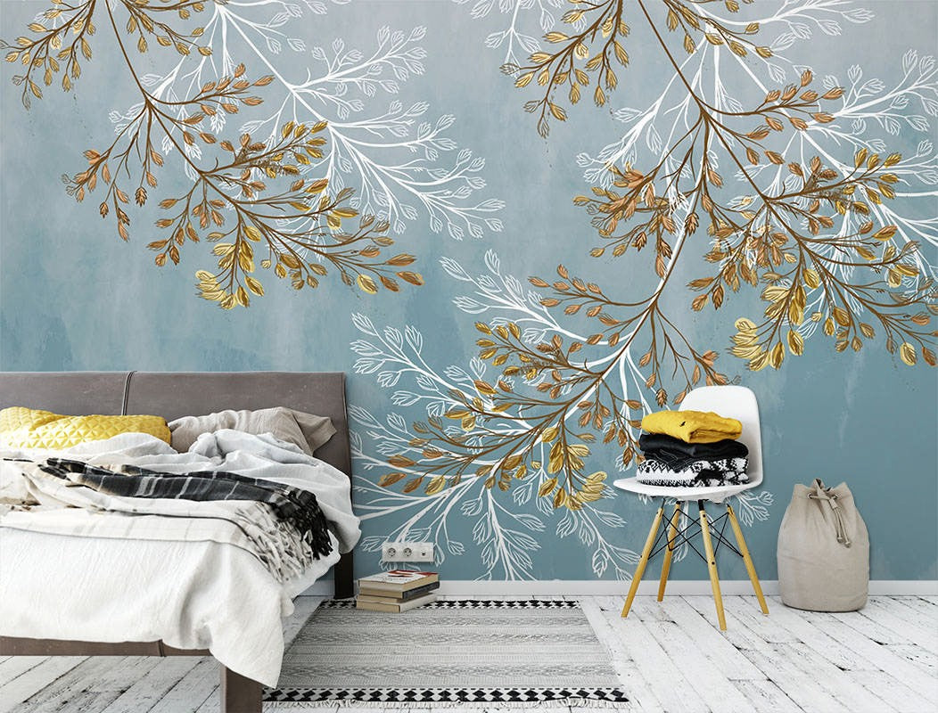 Winter Leaves Floral Gray Wallpaper Mural,Self-Adhesive Peel And Stick 3D Wall Paper,Bedroom Designer Wall Decor