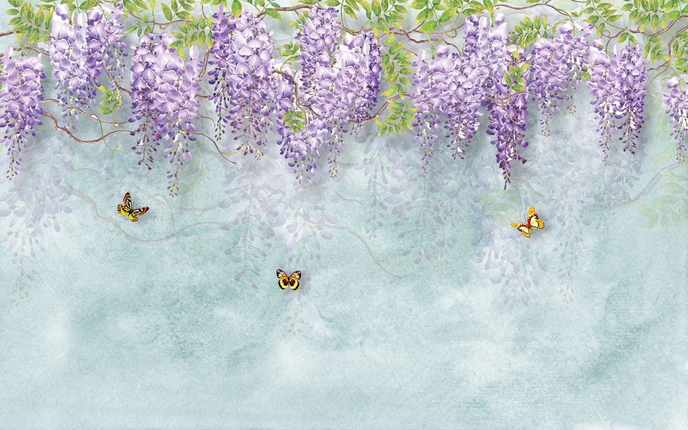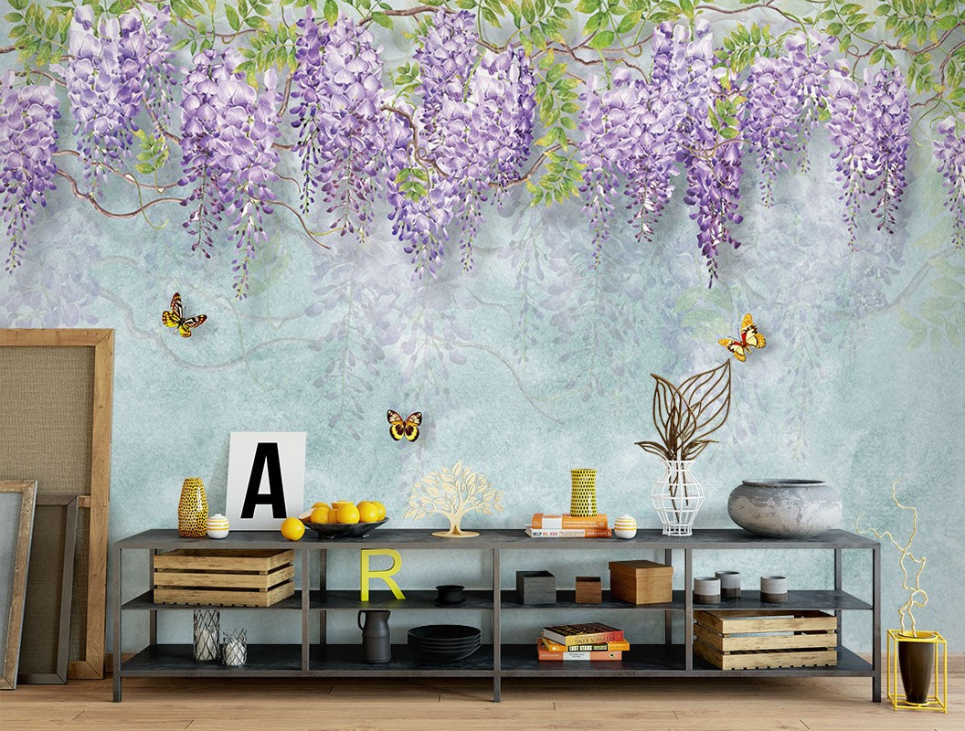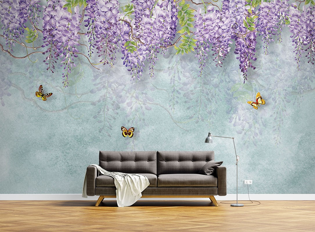 Wisteria Dutch Flowers Floral Bright Wallpaper Mural,Self-Adhesive Peel And Stick 3D Wall Paper,Bedroom Australian Company Wall Decor