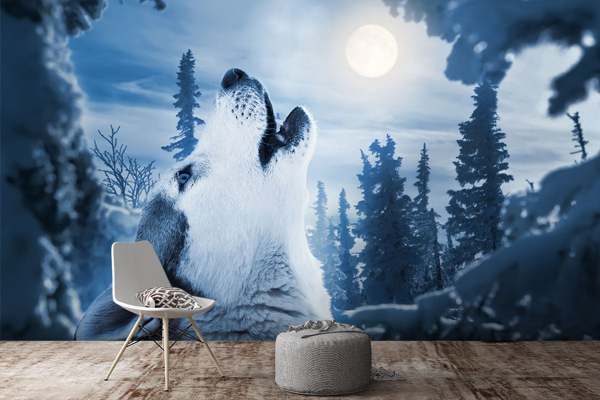 Wolf Howling Wild Animals Black&White Wallpaper Mural,Self-Adhesive Peel And Stick 3D Wall Decal,Removable Australian Company Wall Decor
