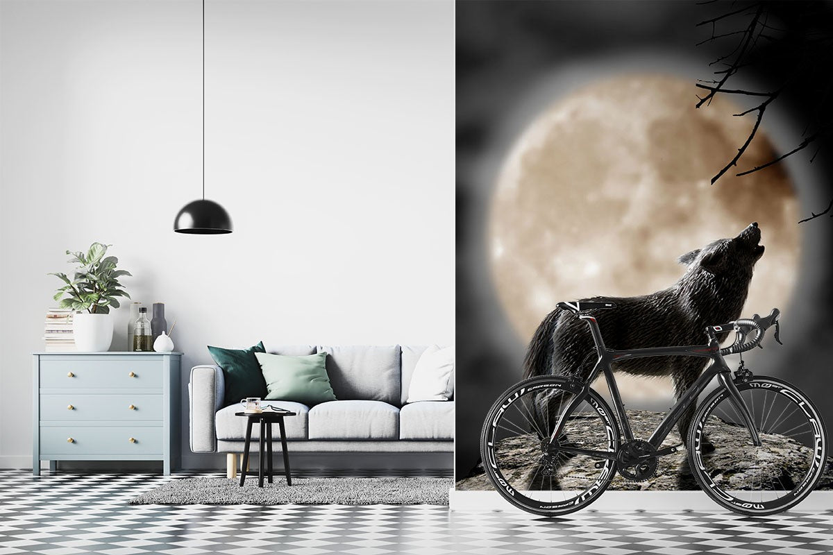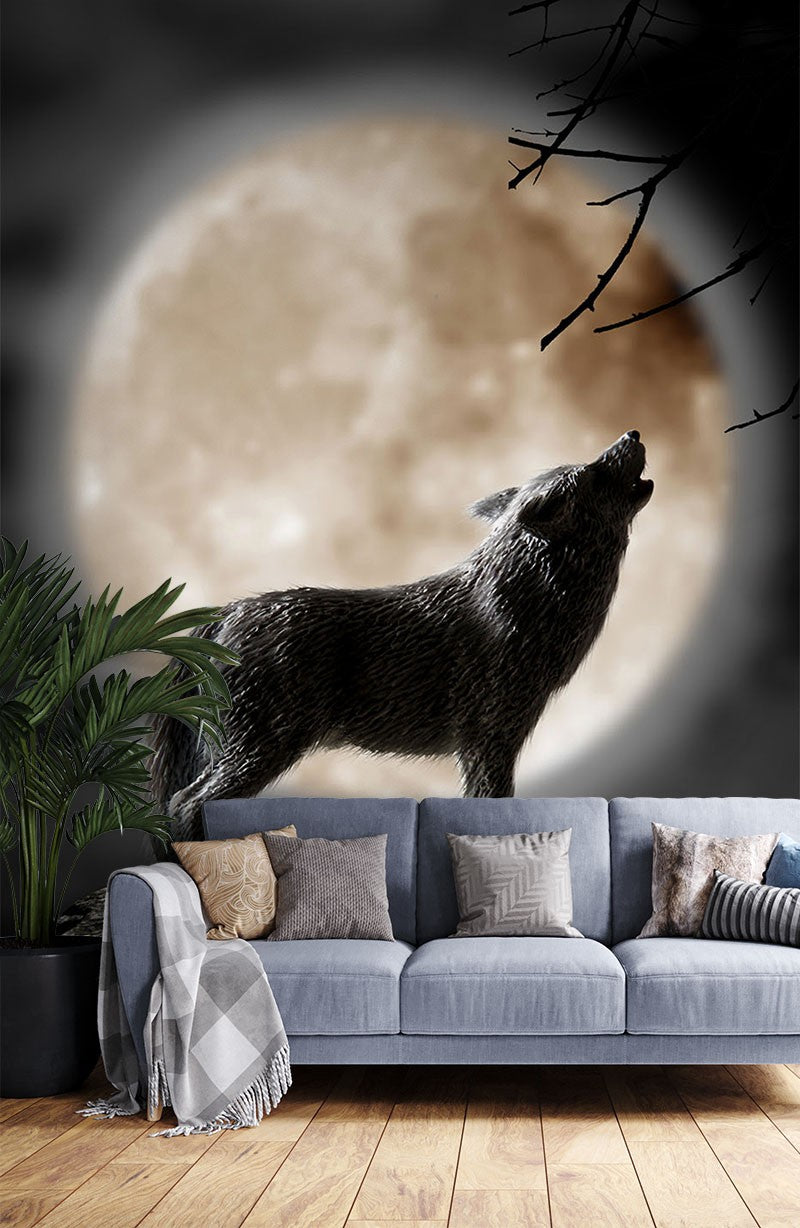 Wolf Moon Animals Fantasy Animals Black Wallpaper Mural,Self-Adhesive Peel And Stick 3D Wall Paper,Designer Australian Company Wall Decor