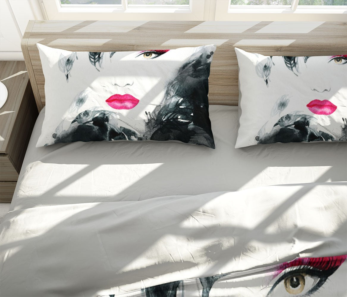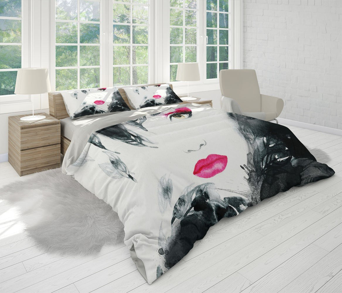 Woman Portrait Duvet Cover Set W Pillow Cover, Black And White Graffiti Graffiti 3D Quilt Cover, Single Double Queen King Size Doona Cover