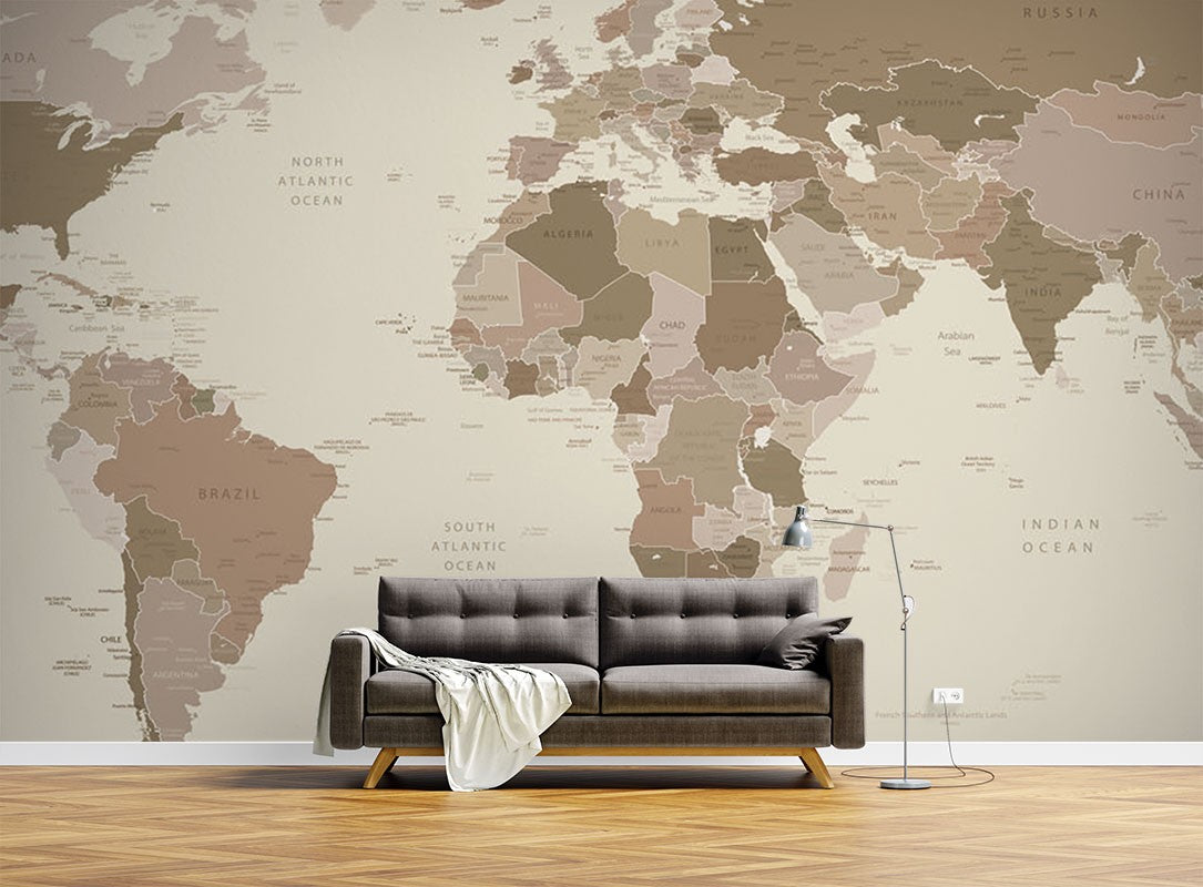 World Map Maps World Map Brown Wallpaper Mural,Self-Adhesive Peel And Stick 3D Wall Decor,Bedroom Australian Company Wall Decor
