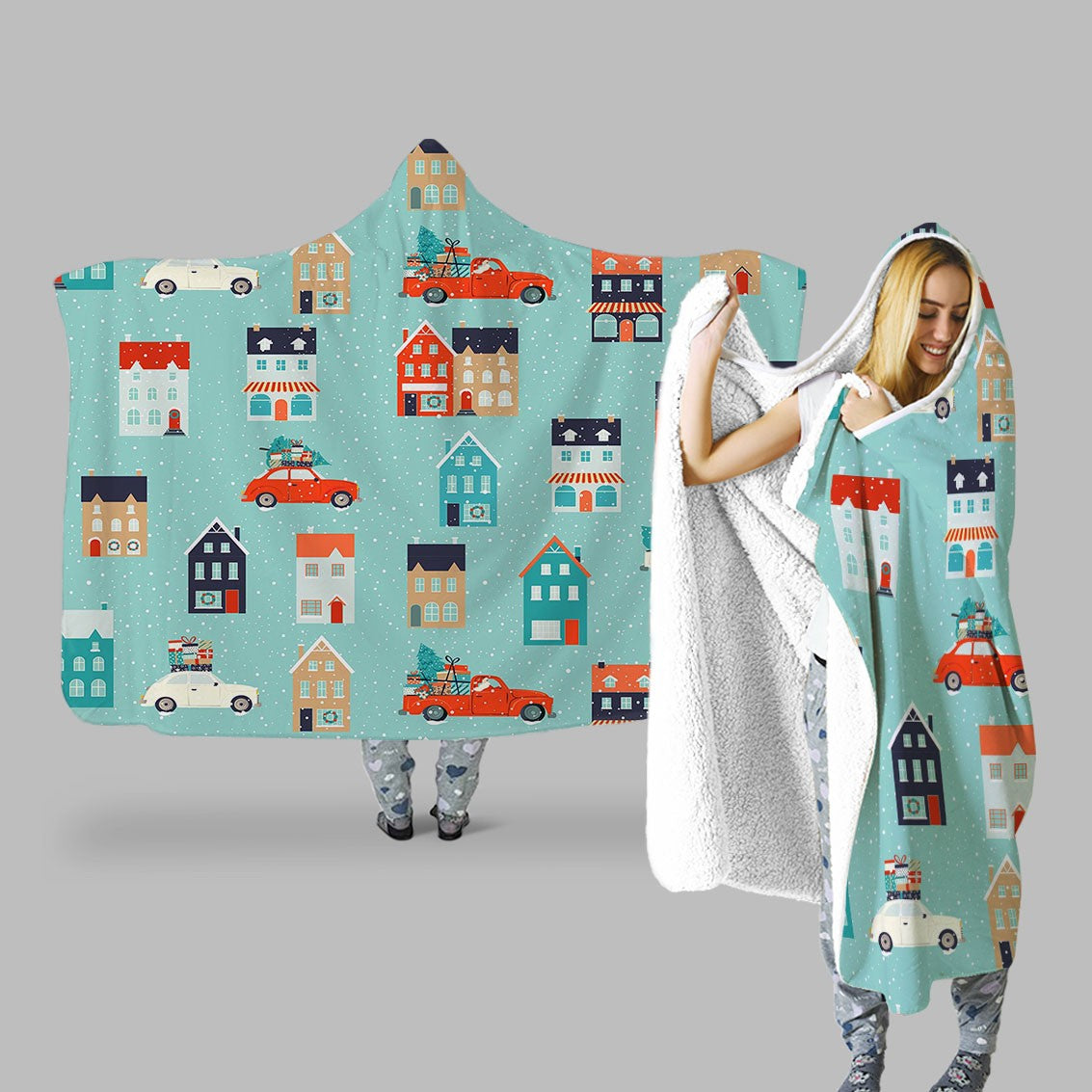Xmas Car Gifts Floral Patterns Blue Personalized Hooded Throw Blanket Fleece Hoodie Cape