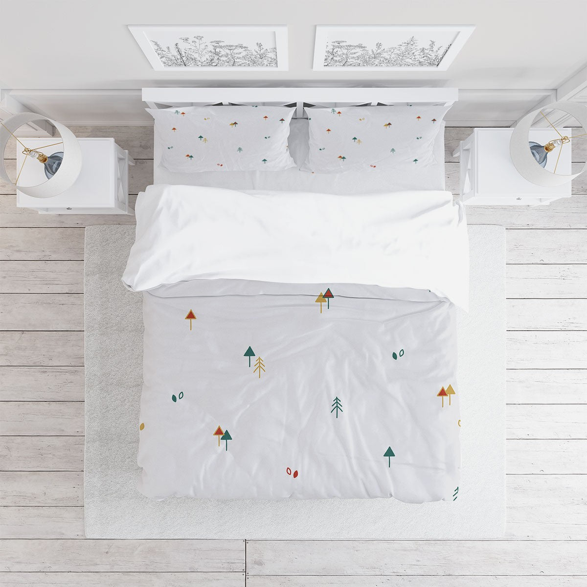 Xmas Tree Icon Duvet Cover Set W Pillowcases, White Floral Patterns 3D Quilt Cover, 3Pc Single Double Queen King Size Doona Cover