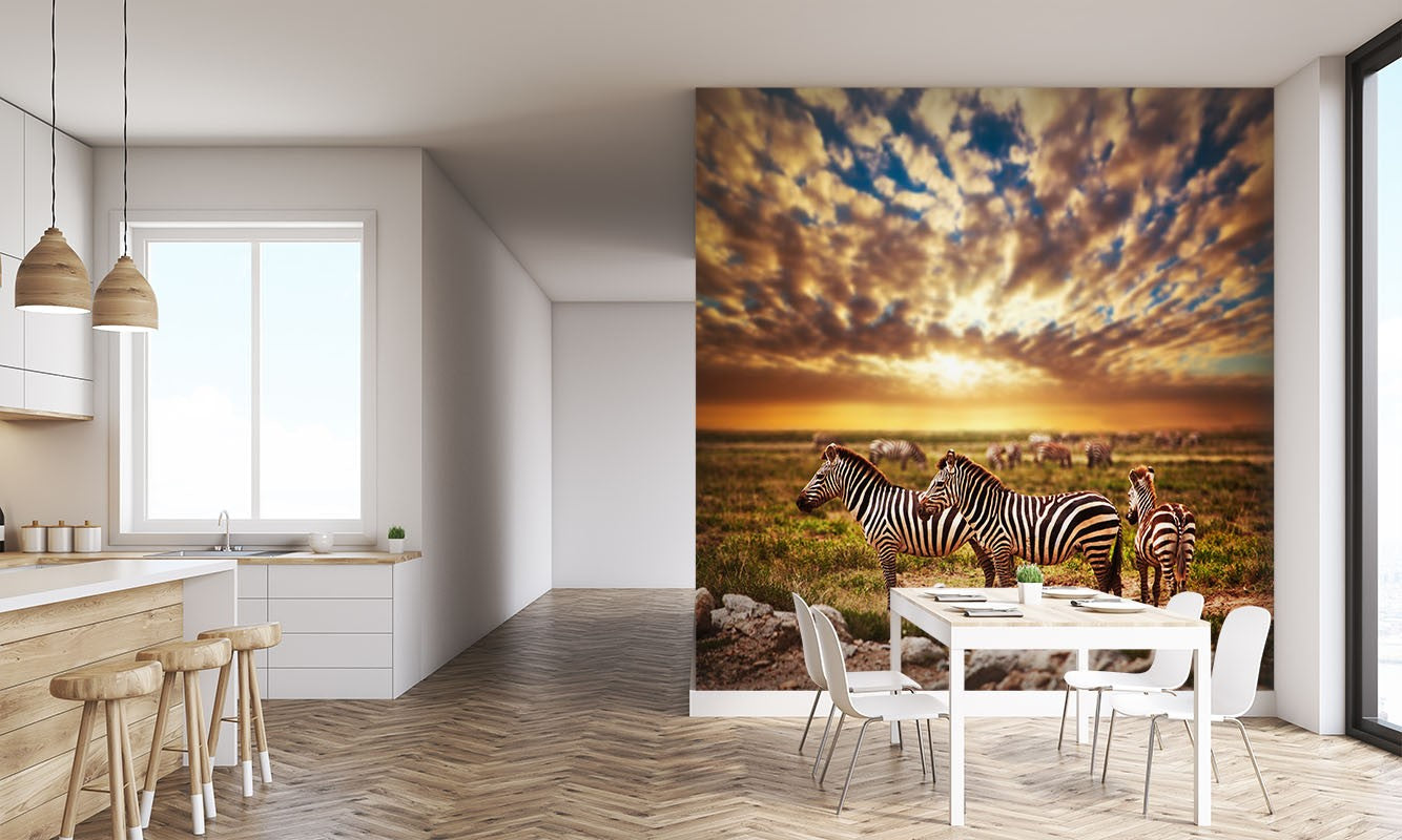 Zebras Sunset Wild Animals Bright Wallpaper Mural,Self-Adhesive Peel And Stick 3D Wall Decor,Bedroom Designer Wall Decor