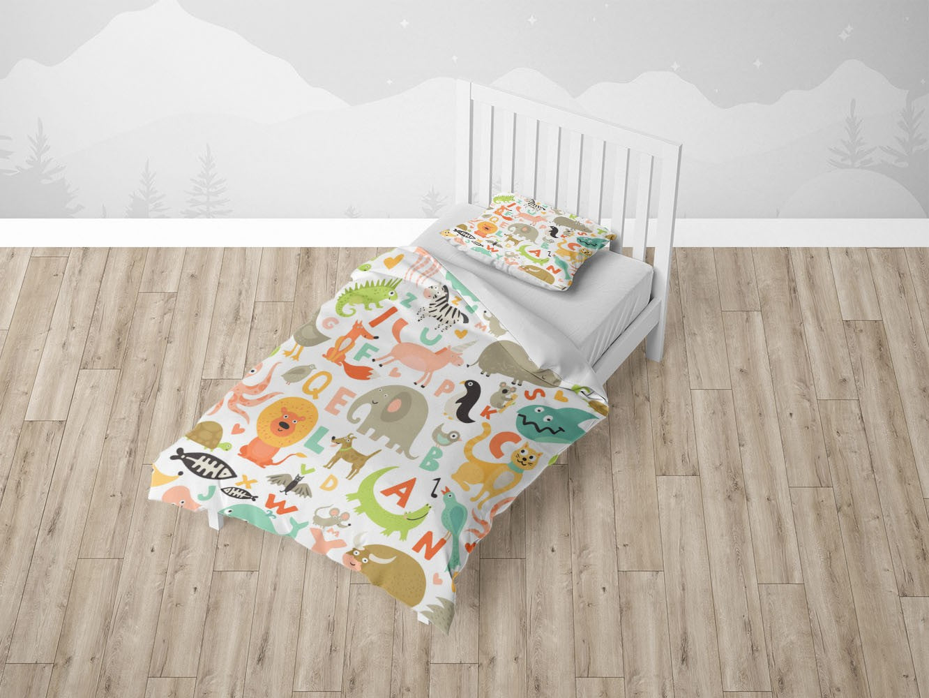 Zoo Cute Animals Duvet Cover Set w Pillowcases, Colorful Kids Cartoon 3D Quilt Cover, 3pc Single Double Queen King Size Doona Cover